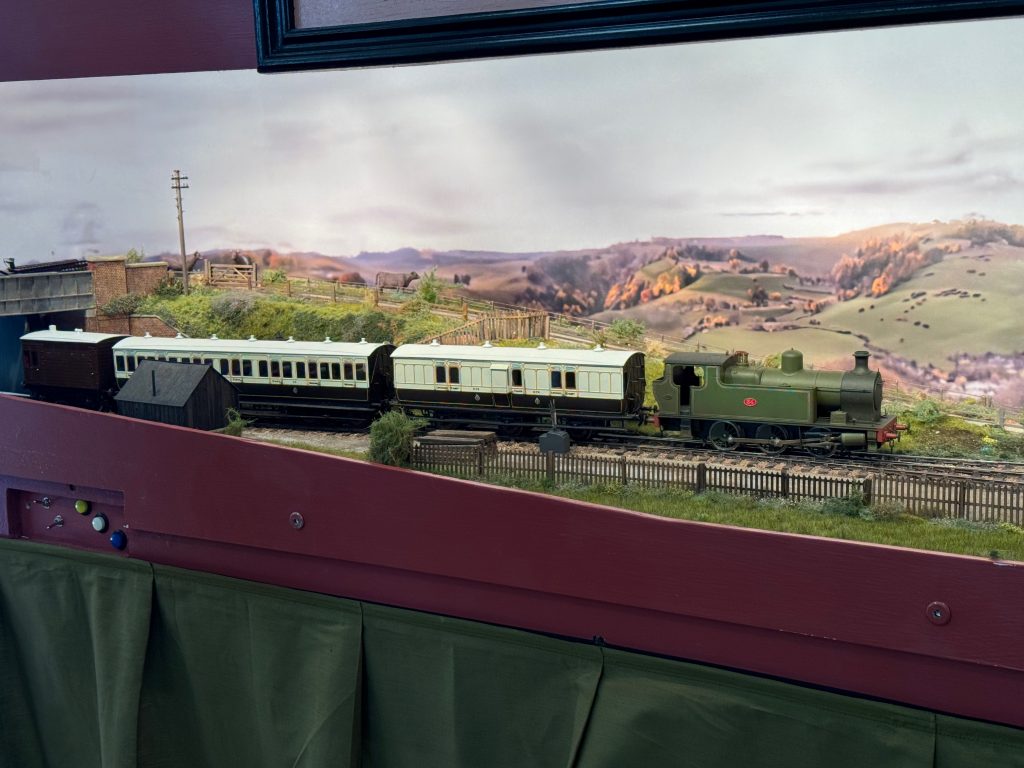 Pavilion End made its third appearance at NEWGOG but improved by additions to give more of a South Wales feel since its first outing. The coal train is headed by 4248, shedded at Ebbw Jct, the mixed freight is behind 666, and ex-ADR Victory tank, and the workman’s train now has three 4-wheeled coaches with real (or dubious) stories.